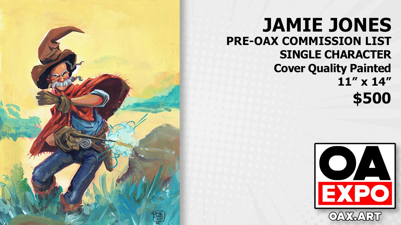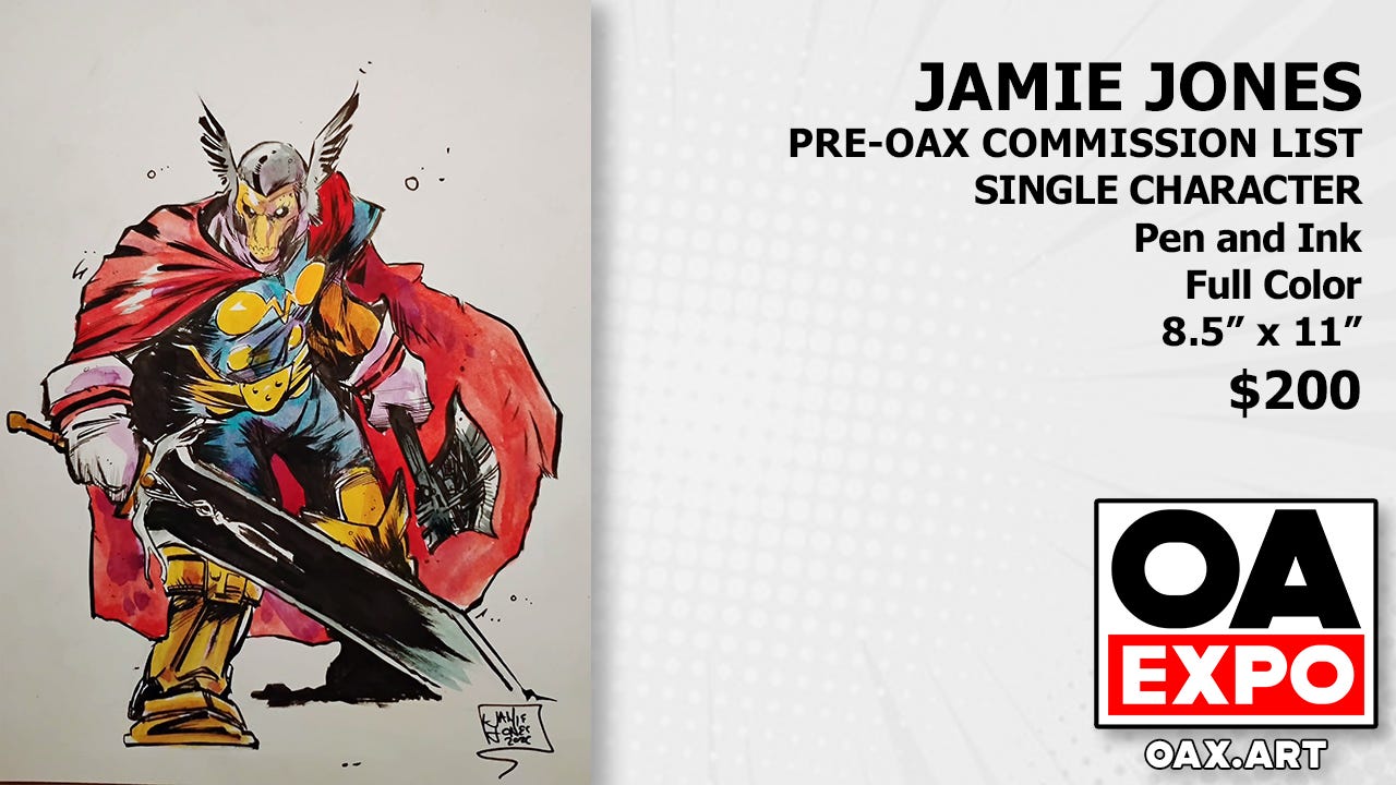 On the Panel we annouced that I will be attending OAX (The Original Art Expo) this Febuary. I was there last year, as a member of IC3, but this year I’ll be wheeling and dealing behind a booth. With OAX comes Pre-Show Commissions! If you are going to be at the show and would like a piece go to: https://oax.art/commission.asp?id=131&Guest=Jamie_Jones and grab you one.