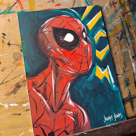 Comics work has all but stopped. Because I have been getting things and commissions together for OAX (Original Art Expo) in Orlando, Fl at the end of the month. There have been so many commissions I have needed to do I haven’t really had time to draw the comics for Spakow! #5. However, I cannot express my graditute to the people who have commissioned me so far. You have helped in so many aspects of my life recently and provided a little bit of a cusion in this big transition. If you are coming to the show I am very excited to see you, look at cool art with you, and talk and have a drink and talk.