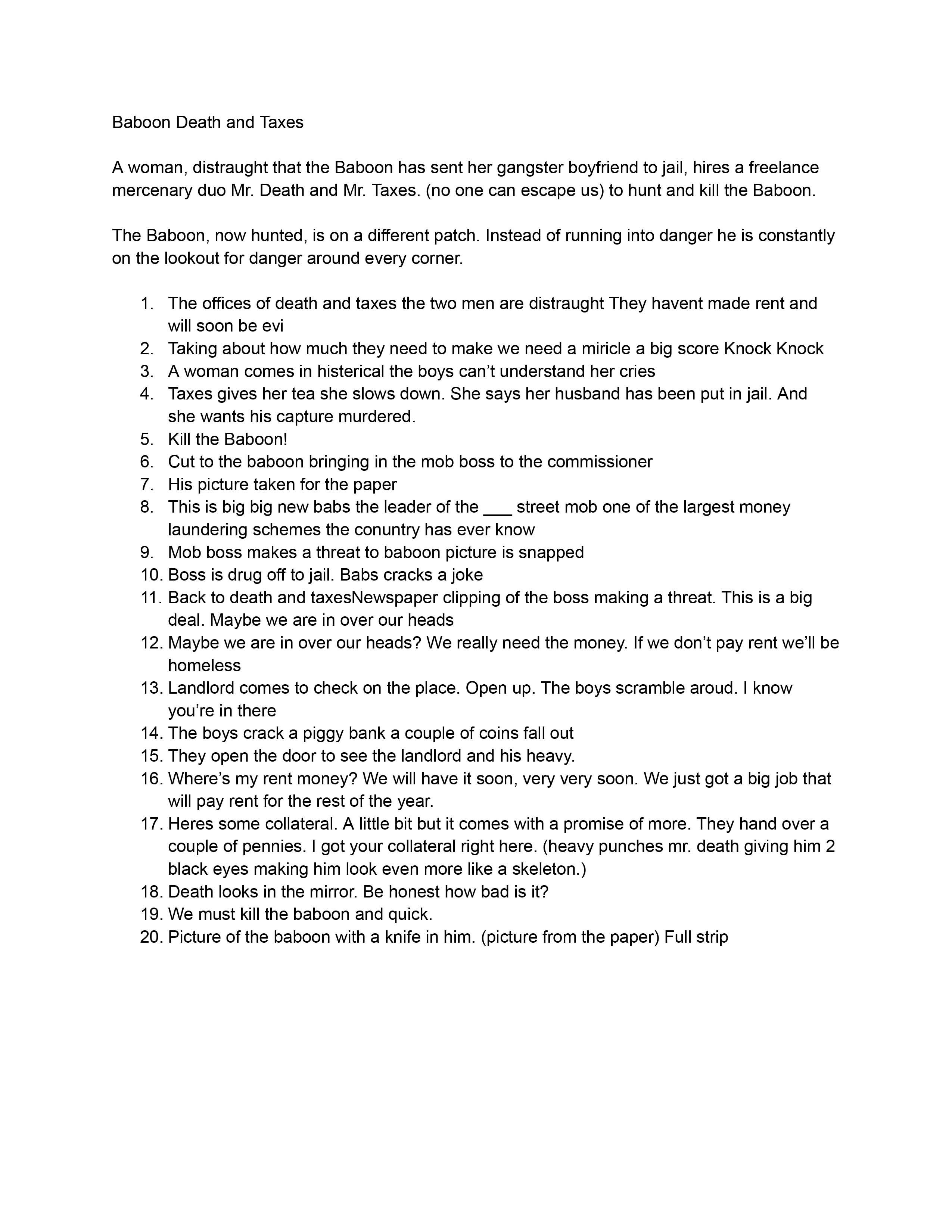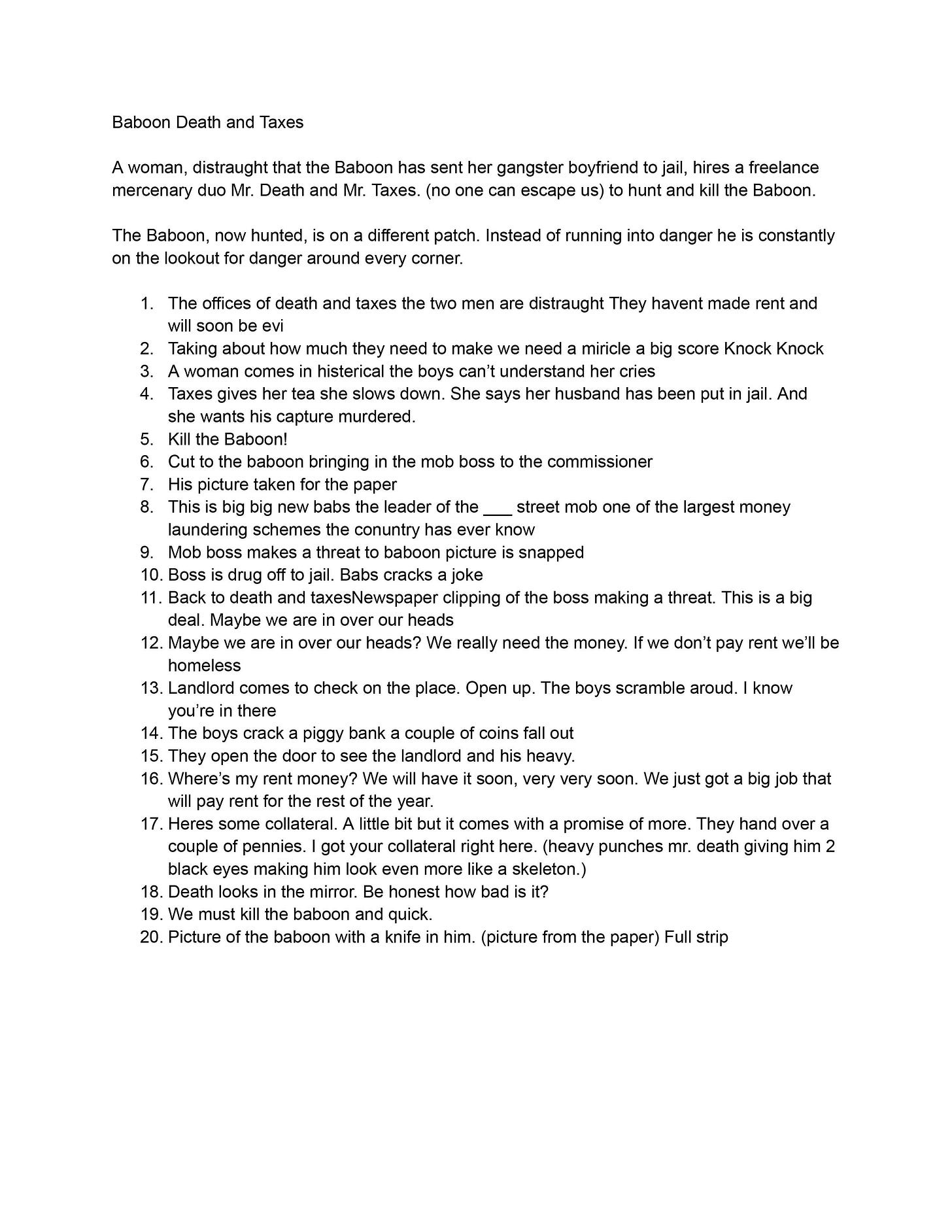 here’s a look at the script I have written for myself for the first 20 strips of The Baboon Dailies. spelling errors, disjointed thoughts and all!